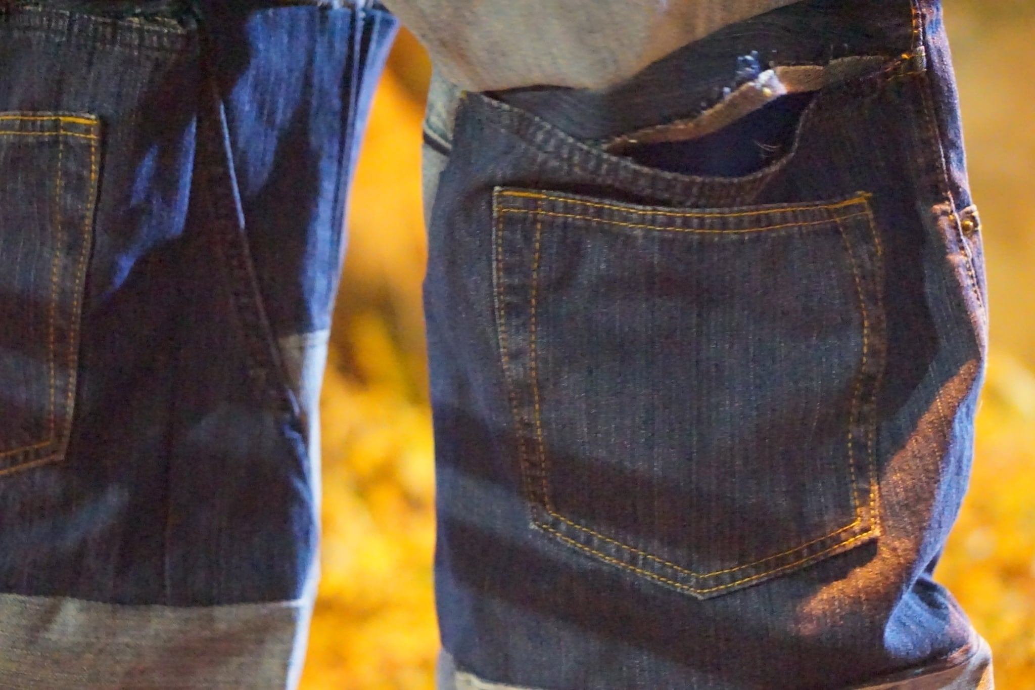 2本のデニムを再構築したワイドジーンズ。トレンド感溢れる極太ワイドパンツで、裾回りも紐がついておりシルエットが変えられるのも特徴的なアイテム。ワイドパンツをあまり試されたことがない方でもオススメのアイテムとなっております。